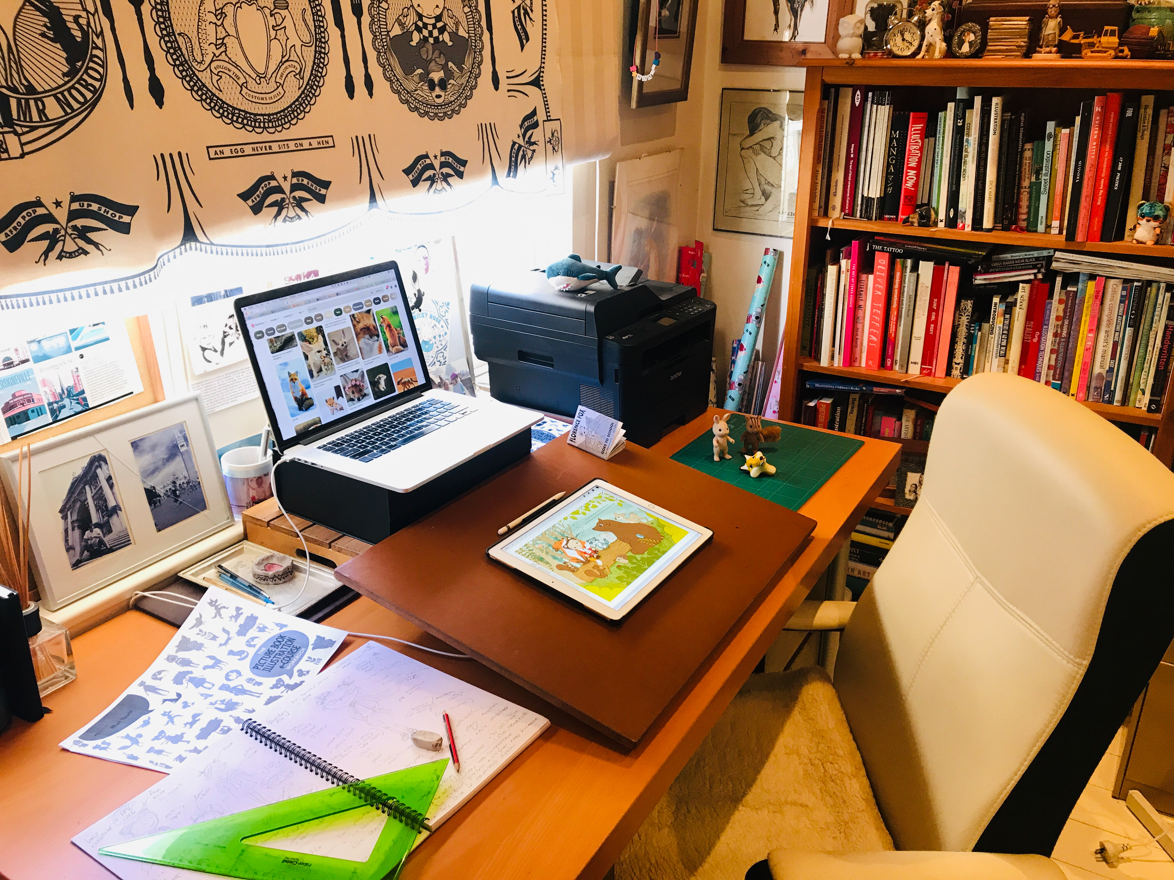 This picture book spread was done as part of the Children's Book Illustration e-Course taught by Nina Rycroft. The story "Florence Fox goes to school" was written by Ben Whittacker-Cook.