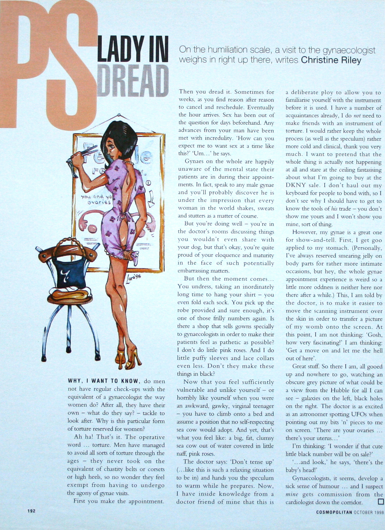 Cosmopolitan. Final page musings on "PS" page. Watercolour and charcoal pencil.
