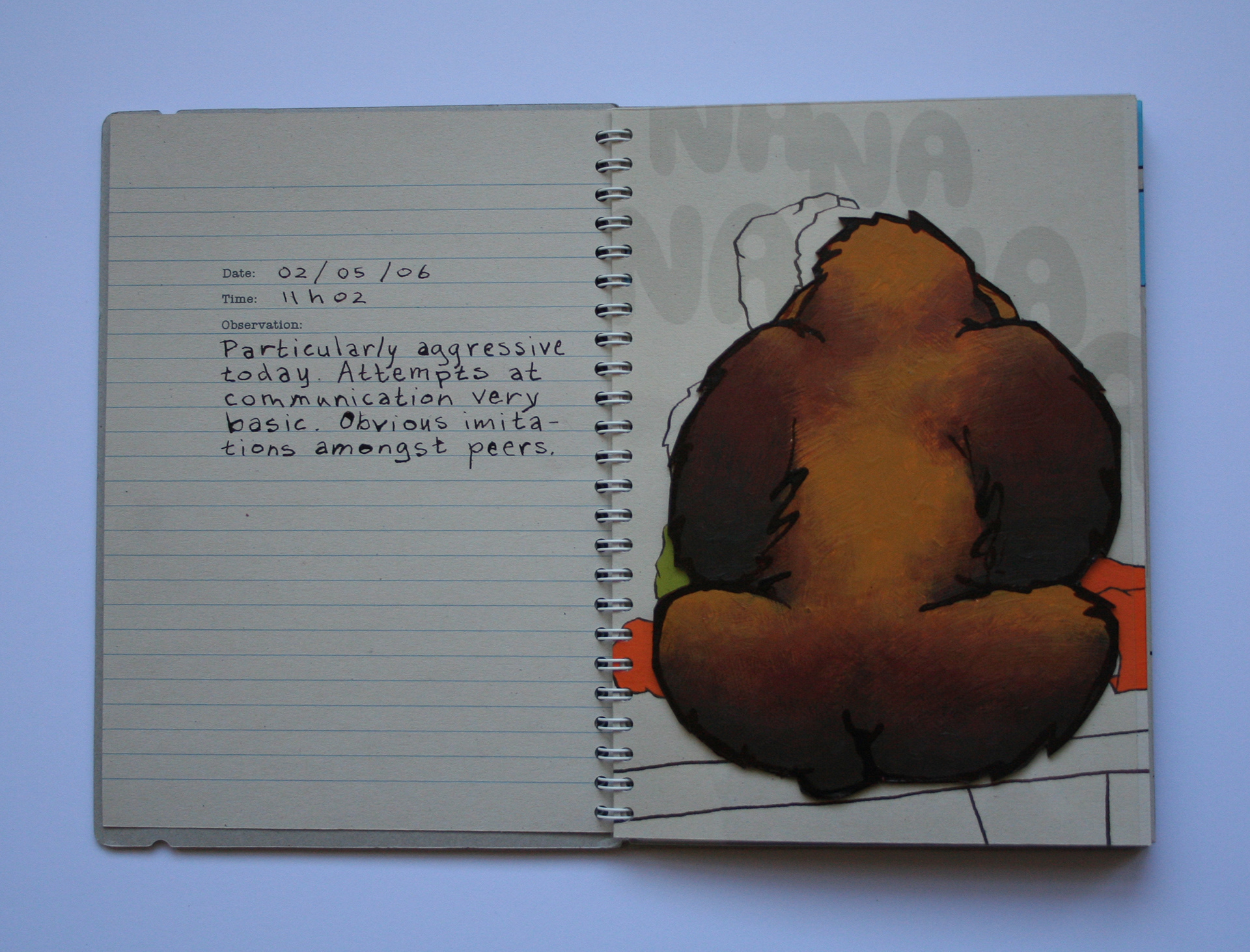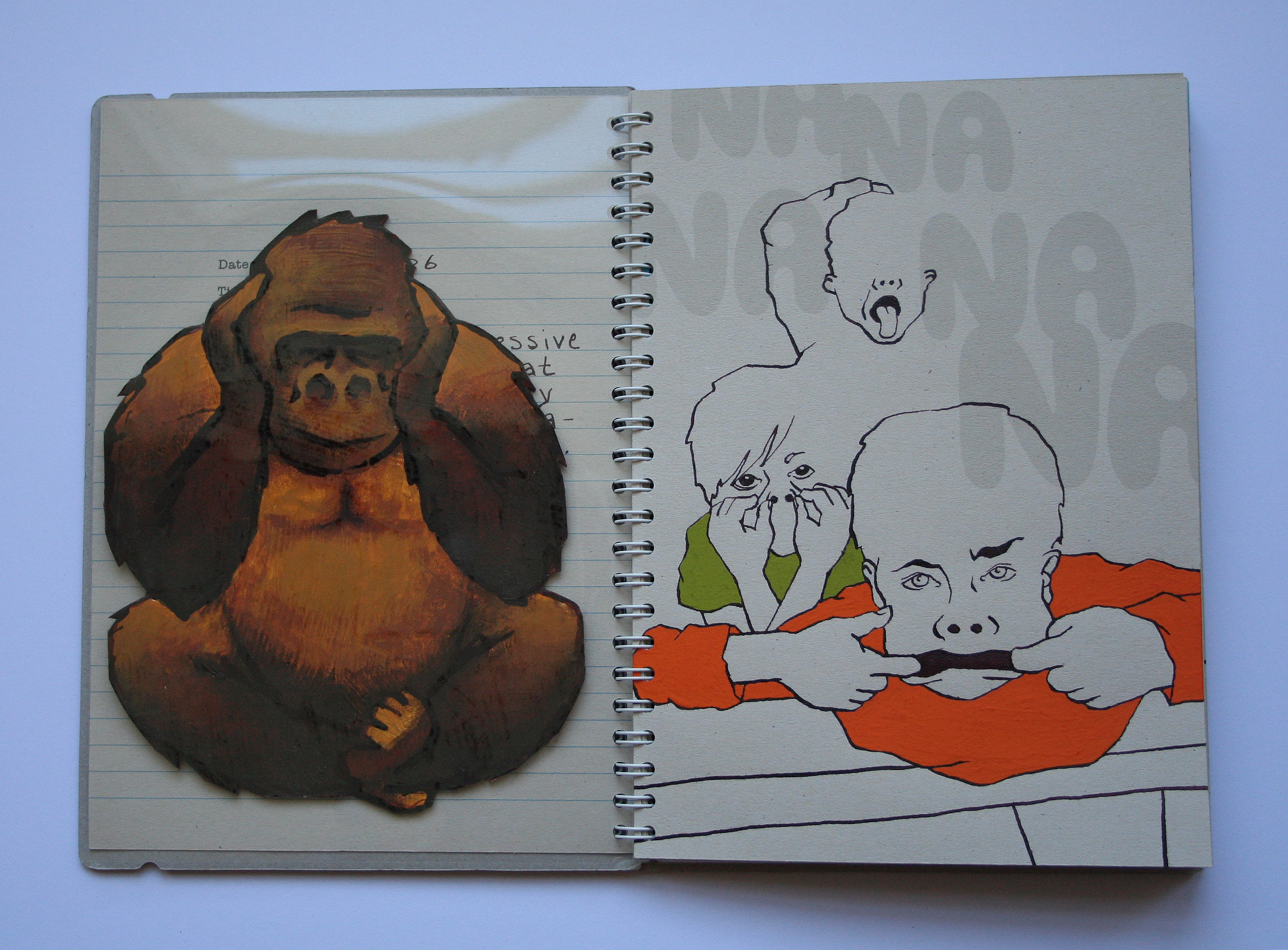 Gorilla illustration painted on acetate to be viewed from both sides of the page