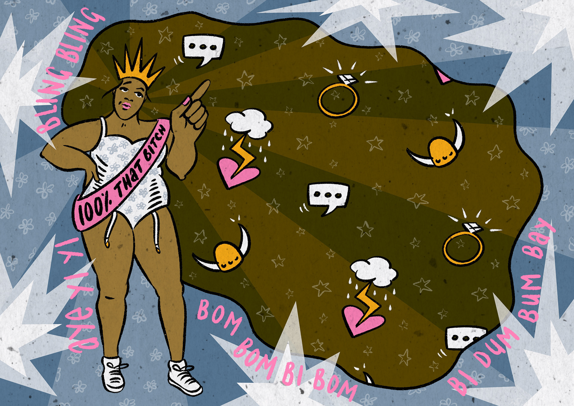 The final assignment for the 2019 MATS Editorial illustration course was to create a double page spread for the song "Truth Hurts" by Lizzo. I tried to convey her sassy attitude. (Animated GIF can be seen on my Instagram)